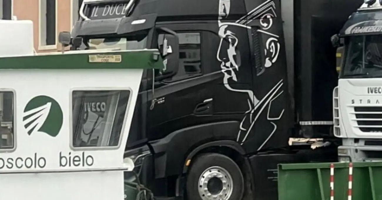 Siamo nei pressi del Canal Grande e le immagini hanno fatto il giro del mondo. Un camion con l’effige di Mussolini sulle portiere e la scritta “Duce” è stato fotografato parcheggiato su una chiatta di fronte all’Hotel Bauer a Venezia e questo ha attirato l’attenzione anche delle autorità che avevano iniziato le indagini per determinare se si configurasse il reato di apologia del fascismo. Era intervenuta anche la segretaria del PD cittadino, Monica Sambo, parlando di «sfregio a Venezia». La ditta di trasporti ha espresso il suo sdegno per l’accaduto. In particolare, Saverio Montanari, componente del Cda di Arterìa, la ditta specializzata in trasporto di beni di lusso coinvolta nella vicenda, ha spiegato come sarebbero andate le cose. Per velocizzare le procedure l’azienda aveva scelto di affidarsi a Obiettivo Trasporti di Concordia Sagittaria che avrebbe mandato il camion nero con il volto stilizzato di Mussolini.