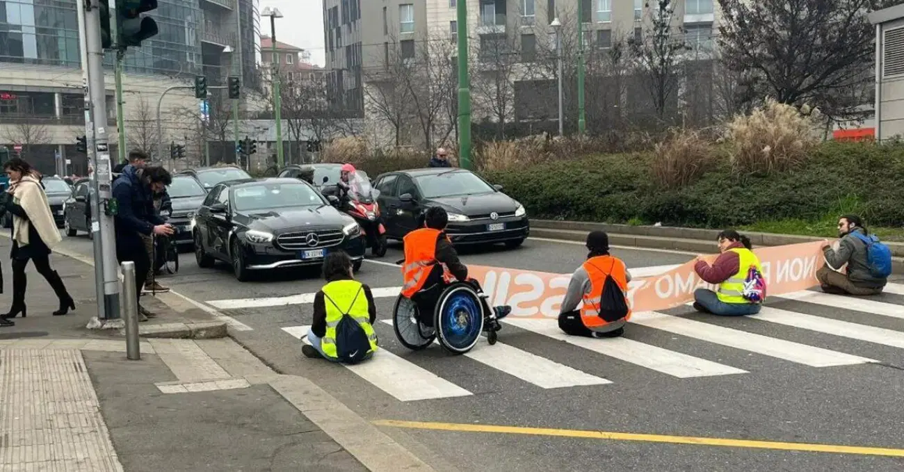 Gli attivisti di Ultima Generazione hanno nuovamente bloccato il traffico, stavolta in zona Garibaldi a Milano. Erano in cinque. Con indosso i loro ormai noti gilet catarifrangenti gialli e arancioni, hanno portato con loro uno dei soliti striscioni da esibire mentre occupavano entrambe le carreggiate della strada, impedendo il passaggio delle automobili. La scritta recitava: "Non paghiamo il fossile". Sul posto sono poi giunti i carabinieri, che hanno portato i manifestanti in caserma per i dovuti accertamenti. Tra i manifestanti anche Simone Ficicchia, l'attivista 20enne per il quale la Questura di Pavia aveva promosso la sorveglianza speciale della durata di un anno, che però poi era stata respinta dal Tribunale di Milano. A causa delle diverse denunce rimediate durante le varie azioni del movimento, era stata richiesta l'applicazione del codice antimafia che avrebbe garantito l'obbligo di dimora e forme di controllo costanti.