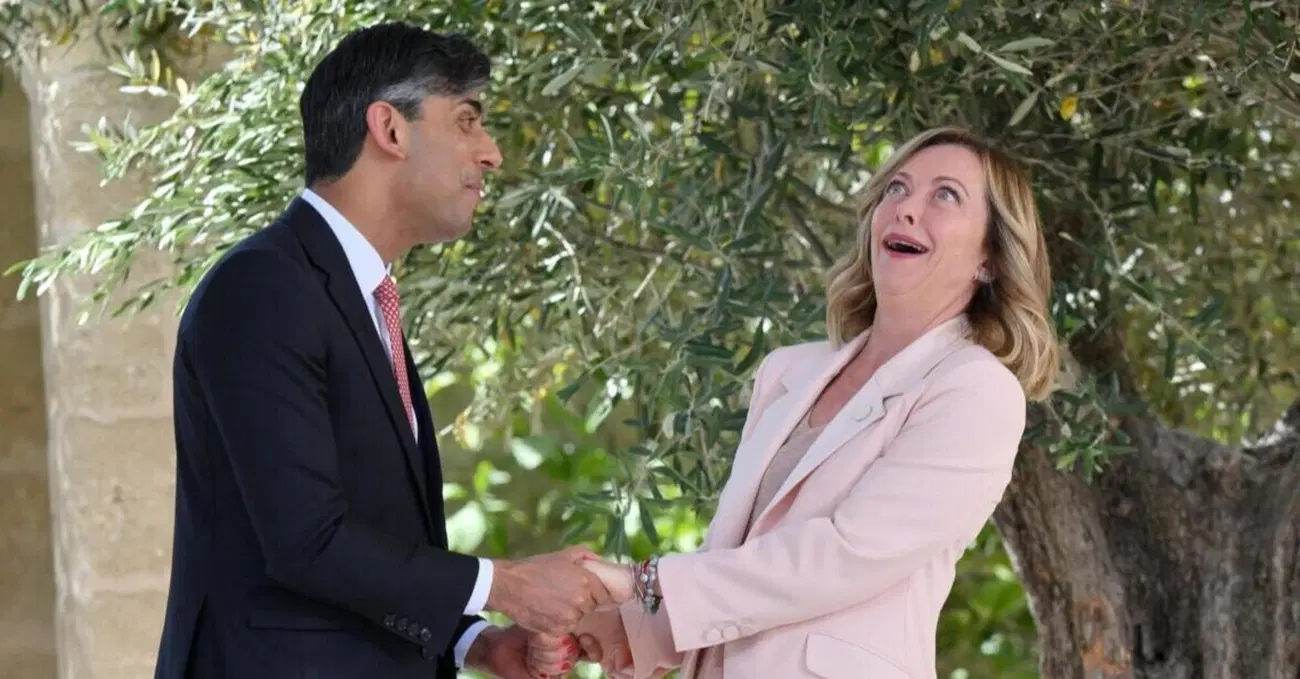Proprio in Puglia al G7, sulle note di Andrea Bocelli, fra foto, espressioni bizzarre, abbracci e balli tradizionali – come dimenticare l’esibizione folkloristica di Giorgia Meloni che balla la pizzica a Borgo Egnatia – la chimica e l’intesa (politica, s’intende) fra Meloni e Sunak non era passata inosservata, tanto da generare un’incredibile quantità di meme. E Andrea Giambruno? In realtà della vita privata e sentimentale della premier si è vociferato molto, ma non si sa se e chi sia accanto a lei al momento, anche se, diversi hanno ipotizzato di un possibile ritorno proprio con Andrea Giambruno, padre della piccola Ginevra, dopo tanti anni insieme. Certo, se così fosse, forse converrebbe invitare Rishi Sunak a stare al suo posto.