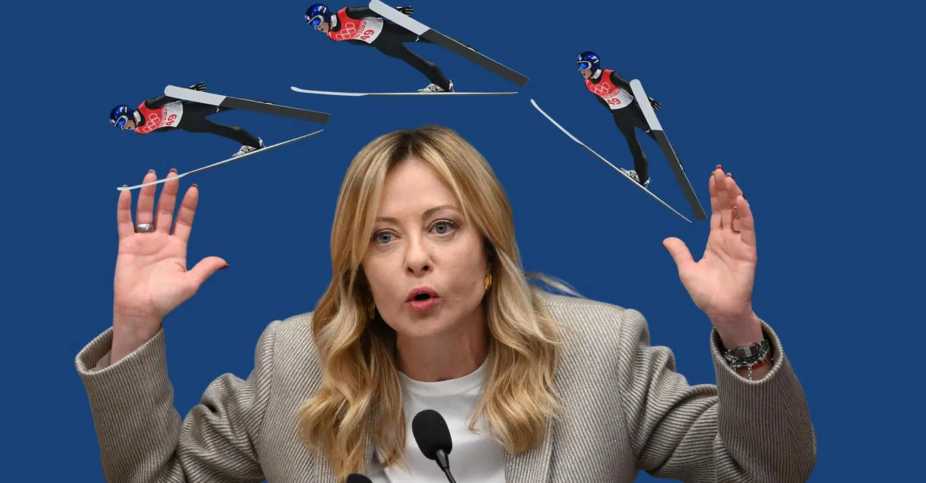 La verità è che da Giorgia Meloni dovremmo mandare i saltatori di sci, quelli che si iniettano l’acido nel pene per farselo diventare più grosso e poter gareggiare con delle tute più grandi per migliorare l’aerodinamicità. Sì, quelli che barano. Quelli che si ingrossano il pene per vincere. Quelli che si nascondono le domande nelle mutane e le tirano fuori di fronte a tutti. Non quelli che sciorinano dati sull’occupazione o chiedono degli equilibri geopolitici nell’Artico. Ma quelli che arrivano e fanno: Trump ieri ha difeso un agente che ha ammazzato a sangue freddo una donna in un’auto, che famo? Lo diciamo o no che è un problema? Il capotreno ammazzato, la ragazza uccisa e stuprata, le babygang, le risse tra maranza a Capodanno, che famo? Lo diciamo o no che è anche colpa vostra? Il mercato culturale italiano, che famo, lo diciamo o no che l’egemonia culturale del governo è più una parodia in scala ridotta che fa rimpiangere i berlusconiani e trash anni Dieci del Duemila? Le tasse aumentano, il mercato non prospera, in tre anni l’Italia non è diventata più liberale ma più statalista, che famo, iniziamo a cambiare qualcosa o perculiamo la sinista ad Atreju e poi siamo come loro? E le caste professionali, come tassisti e balneari? L’immigrazione sale e il governo aveva promesso il contrario, che famo, lo raccontiamo agli elettori? E così via.