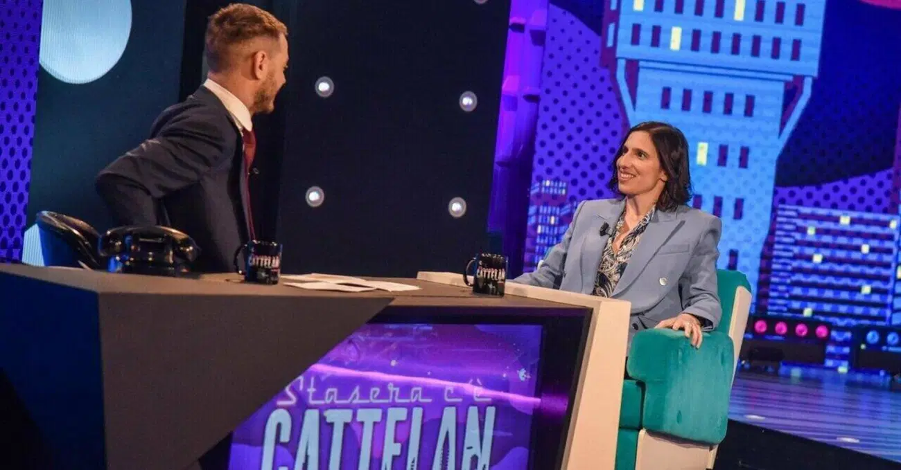 Abituata a vederla con il parrucco liscio, sono stranita dai cannelloni che le incorniciano il viso. Li avevo lasciati alla regina Maria Antonietta, rivisti alle domeniche di festa in provincia, forse nei tutorial di giovani sprovvedute che non si ricordano di passarci in mezzo le dita ed "aprirli", come si usa dire nel mondo dei coiffeurs. L'ansia da prestazione non si percepisce sentendola parlare di diritti e riconoscimenti delle famiglie omogenitoriali, nemmeno di crisi climatica, ma si avverte un inizio di imbarazzo tirando fuori la storia di vecchi tweet. Nel 2013 faceva “satira politica dura e con Marco Travaglio”, di recente, si sono fatti una risata, dice. Pure con Fabio Fazio e Luciana Littizzetto, la tocca piano, tirandoli in mezzo durante la loro passata conduzione a Sanremo. Questione di voci, pare, e non cantavano nemmeno.