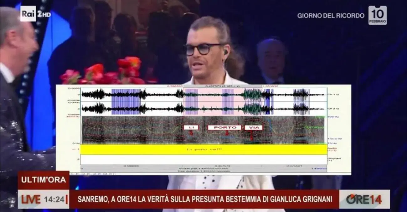 Non c'è pace per Gianluca Grignani. Prima del Festival, la sua canzone, Quando ti manca il fiato, era stata spoilerata per intero da un collaboratore via Facebook. Poi, durante la terza serata della kermesse, si è visto costretto a ripetere l'esibizione per via di un errore tecnico da parte del fonico della performance. Disguido gestito dal rocker con garbo e gentilezza, alla faccia di Blanco. Subito dopo il siparietto, però, quando Amadeus è tornato sul palco per consegnargli i fiori, è successo qualcos'altro e, da quel momento, il web vuole risposte: Gianluca Grignani ha bestemmiato? La clip con la presunta imprecazione blasfema è divenuta subito virale: c'è chi non ha dubbi e chi si mostra più restio alla conferma. Insomma, non v'è certezza. O meglio, non v'era. Nella giornata di venerdì 10 febbraio, il programma di Rai2 Ore14, condotto da Milo Infante, ha voluto cercare una risposta definitiva tramite un consulente che ha analizzato lo sprettrogramma e le formanti della scena. Una moviola in campo, praticamente. E cosa ne è emerso? Trovate il video qui, dal minuto 19.00.