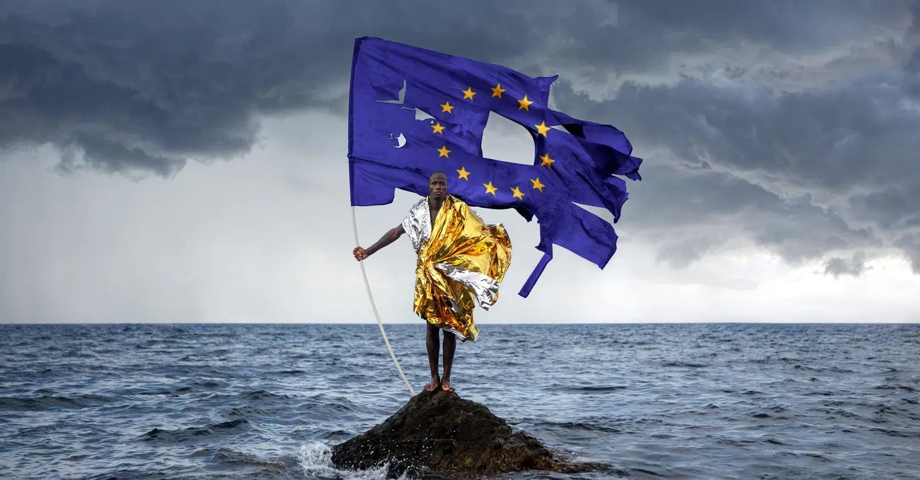 Sì, infatti inizialmente l'immagine della campagna era quella di questo ragazzo, Mamadou, che si vede sulle foto e nel video della performance, con una bandiera italiana. Poi però abbiamo deciso di usare la bandiera europea, perché è giusto che il problema venga affrontato a livello globale. Non che gli altri Paesi pensino che devono essere solo Italia, Spagna, Grecia e Malta a gestire il tutto. Questa situazione andrebbe affrontata politicamente, dalla Comunità europea e la storia ci insegna che tutte le più grandi nazioni in passato hanno approfittato delle migrazioni. La Francia è stata accogliente, l’America lo è stata anche con noi italiani.