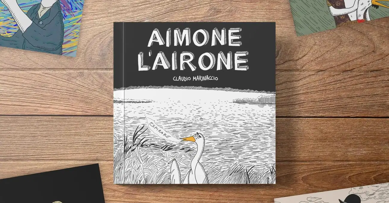 Ogni anno circa 120mila italiani lasciano il nostro Paese per cercare un futuro migliore. Solo il 27,7% degli italiani sessualmente attivi, secondo uno studio recente, fa sesso almeno una volta a settimana. Ad un anno dal titolo, nel 2023, i laureati che avrebbero accettato una retribuzione di circa 1.250 euro è pari al 38,1%. Tutti numeri, e ne abbiamo presi solo alcuni, che tracciano l’attuale situazione italiana. Fughe di cervelli, stipendi al limite della decenza umana, salute mentale sempre più precaria, desiderio sessuale che va ad affievolirsi. Alle relazioni preferiamo gli incontri fugaci, dire “ti amo” sembra diventata un’impresa titanica. Ci riempiamo la bocca di parole come orbiting, ghosting, sexting, senza spesso capirne davvero il significato. Non è facile cambiare la narrazione di un Paese, ma ad Aimone l’airone, protagonista dell’omonimo libro (edito da D Editore) di Claudio Marinaccio, i numeri non servono per raccontarci, in poche vignette, delle storie attualissime.