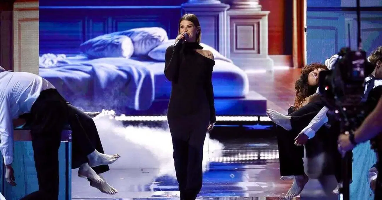 Lei balla su “un'emozione da poco” con una scenografia letteralmente teatrale con tanto di poltrone rosse, molto brava, anche se non mi sembrava perfettamente dentro al brano, era solo tecnica ma fuori tempo.