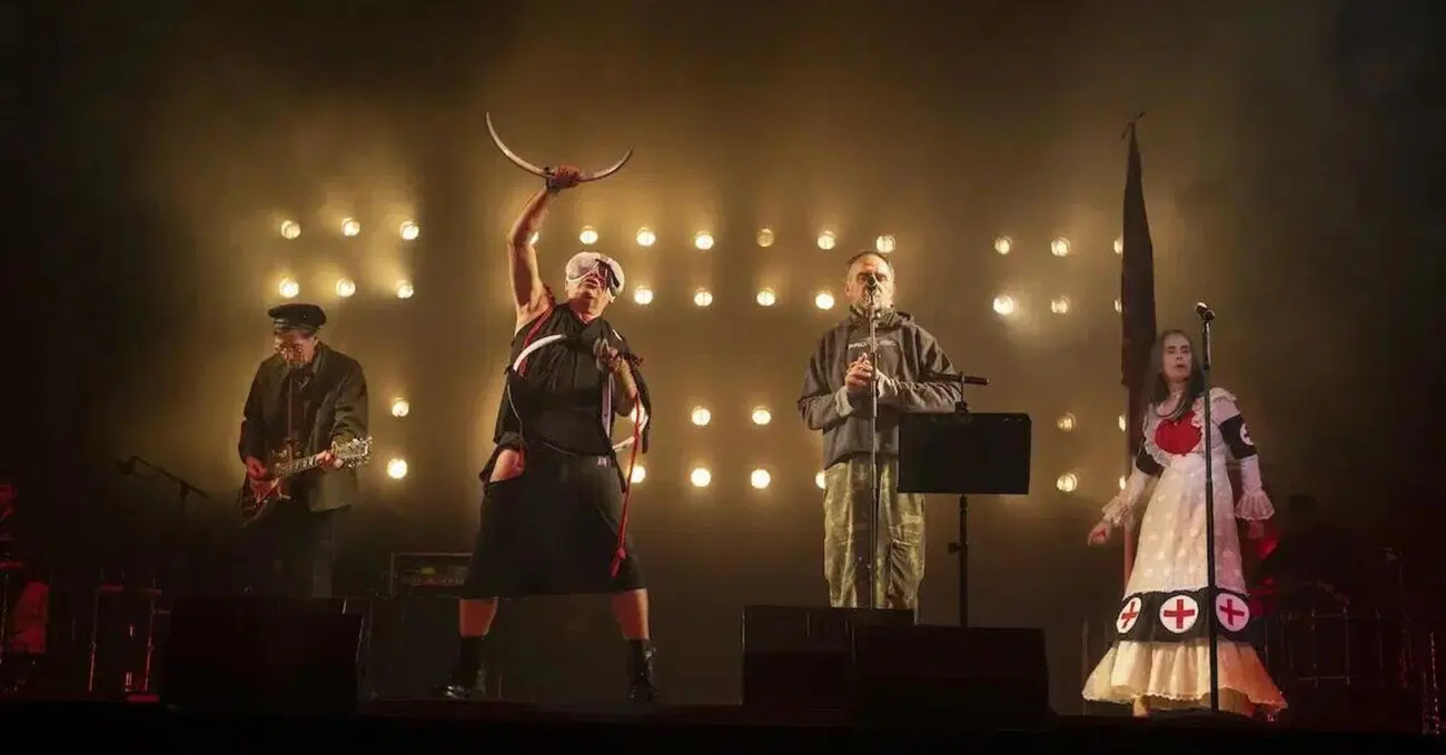 Sta tutto in quella D in più il concerto uno e trino Cccp in Dddr, ovvero Deutsche Demokratische Dismantled Republik, e cioè smontata, smantellata, non solo la Ddr, ma Berlino, loro, noi, visto che “nulla dura per sempre”, come da proclama di Annarella, benemerita soubrette, nelle prime fasi del concerto dell’Astra Kulturhaus. Posto iconico in un luogo che smantellato lo sarà tra pochi anni, ma frantumazione e sgretolamento sono puro Cccp: la città è quella giusta, l’anagrafe e la storia dei protagonisti pure, ciò doveva trasformarsi l’ha fatto e ancora lo fa, non rendersene conto o fingere – come fa il pubblico, anch’esso di età rispettabile – di rivivere l’estetica dell’acciaio e del cemento è parte del gioco, non la realtà.