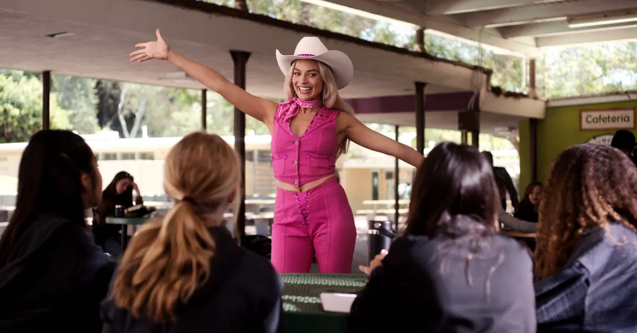 Tutto ha inizio con Margot Robbie, protagonista assoluta del film nel ruolo di Barbie, che atterra su un pianeta arido con bambine intente a giocare a essere madri che, quando vedono comparire la bellissima bambola bionda, vestita come la prima Barbie del 1959 con un costume zebrato, scatenano la loro furia sugli altri giocattoli, dei bambolotti ormai desueti. Perché Barbie è perfetta, bellissima, è l'ideale a cui tendere e - soprattutto - può essere tutto ciò che vuole: può essere Presidente, vincitrice di un Nobel, fisica, mamma, ballerina. E proprio questo è il messaggio che trapela dalle bambole della Mattel: se Barbie può essere tutto, allora anche le bambine che giocano con la bambola possono voler essere come lei.