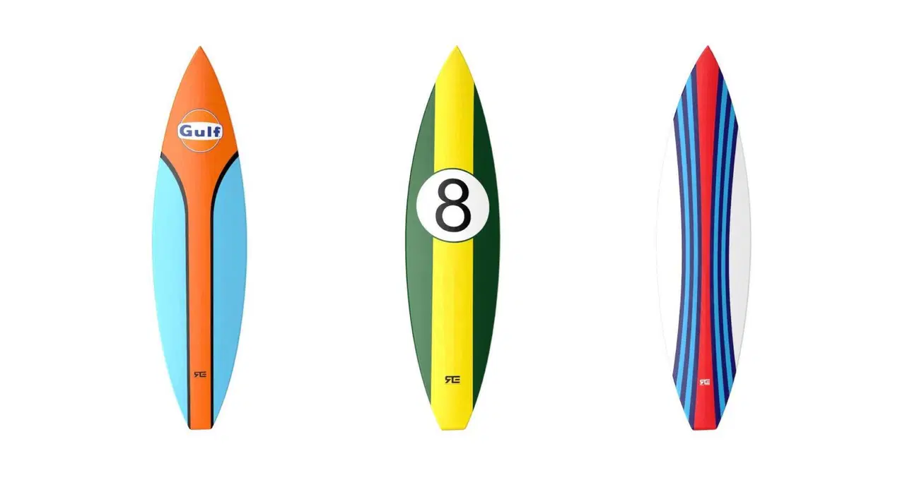 Anche se non sono realizzate in legno ma con materiali all’avanguardia, Racing Emotion ha deciso di realizzare otto splendide tavole da surf ispirate alla livrea delle auto da corsa più famose di sempre. Parliamo delle mitiche colorazioni Gulf e Martini ma anche il verde e giallo di ispirazione Lotus, oppure il blu e bianco che fa tanto Shelby, e numerose altre varianti che faranno impazzire gli amanti delle quattro ruote.