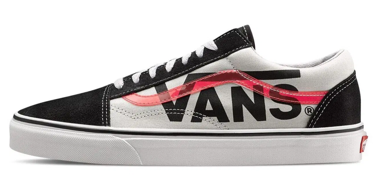 Per questa capsule collection, il modello maschile è l'Old Skool, lanciato per la prima volta dal brand californiano nel 1977. Questa versione stringata low-top, con tomaia in tela e suede, presenta il logo, in versione big, nella parte laterale, che viene inoltre attraversata dalla sidestripe del brand di colore rosso con effetto trasparente. La suola è l'originale waffle in gomma mentre il colletto e controtallone sono imbottiti per garantire comfort e flessibilità.