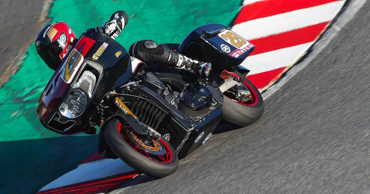 Il King of the Baggers a Laguna Seca è stato qualcosa di eccezionale. Immaginate un plotone di Harley-Davidson e Indian buttarsi a capofitto per il cavatappi del circuito californiano, con un peso che giustifica la retromarcia e le valigie montate, per poi spalancare il gas in discesa e liberare chili di coppia dai V-Twin preparati per l'occasione. Libidine e follia.
