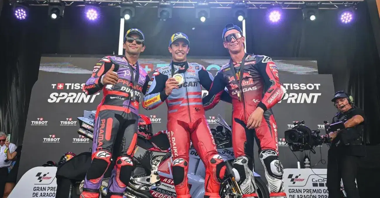 Alla fine è quello più contento di tutti. Jorge Martin nella Sprint di Aragon ha salvato con un secondo posto un sabato che era cominciato nel peggiore dei modi (brutto crash a inizio qualifica) e che invece è finito con il primo posto nella classifica generale ritrovato dopo la giornata terribile di Pecco Bagnaia. Ok, Marc Marquez è andato più forte, ma essere il primo degli umani è bastato al giovane pilota spagnolo di Pramac per mettere nel sacco punti importanti e ritrovare da subito la concentrazione in vista della gara lunga di domani. Prima, però, Martin ha voluto togliersi un sassolino dalla scarpa, rispondendo – proprio come ha fatto Pecco nella serata di venerdì – a quanti continuano a sostenere che a Aragon la Desmosedici 2023 vada più forte della 2024. Le moto non c’entrano, secondo il Martin pensiero, e la differenza l’ha fatta Marc Marquez, che con questa pista ha un’alchimia magica.