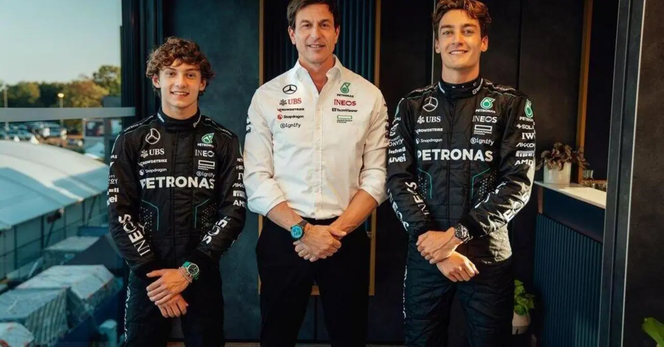 “Per lui vorrei essere ciò che Lewis Hamilton è stato per me. Una guida, un punto di riferimento” ha detto George Russell una volta che gli è stato chiesto di Kimi Antonelli, il suo nuovo compagno di squadra per il 2025. Finalmente, dopo mesi di speculazioni e voci di paddock, la Mercedes di Toto Wolff ha finalmente reso di dominio pubblico la notizia dell’arrivo di Kimi Antonelli nel team come pilota ufficiale di Formula 1 e George Russell è stato subito accerchiato da domande e curiosità su come si sta preparando per il prossimo anno. Prima di tutto però, il britannico, che corre per la Mercedes dal 2022 dopo due anni di gavetta in Williams, doveva fare gli onori di casa e presentare ai tifosi della stella a tre punte il nuovo beniamino: lo ha fatto con un video su Instagram, che ritrae entrambi nell’hospitality della Mercedes di Monza con la tuta di cui già condividono i colori, essendo Antonelli pilota del Junior Team delle frecce d’argento.
