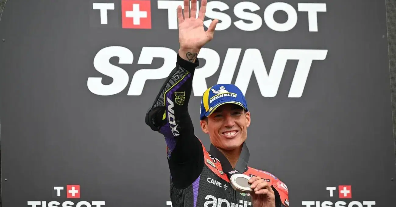 Aleix Espargarò arriva in sala stampa e si mette a parlare velocissimo: lo fa sempre, ma solo in spagnolo, quando le cose sono andate particolarmente bene. Qui, davanti all’asfalto Silverstone, ha più di un motivo per essere contento: le aspettative rispettate, il record (01:57.309) senza senso in qualifica nell’anno del ritiro, la velocità nella Sprint con la gomma dura che gli altri saranno quasi obbligati a usare domenica. “È stata una gran giornata”, ci dice subito. “L’ho detto anche a Barcellona, ma questa è stata una delle gare migliori della mia vita. Quando ho fatto il record della pista non ci volevo credere. Invece in gara sapevo che Jorge sarebbe stato molto esplosivo e che me la sarei potuta giocare, però il ritmo di Enea è stato brutale e non c’era modo di contrattaccare”.
