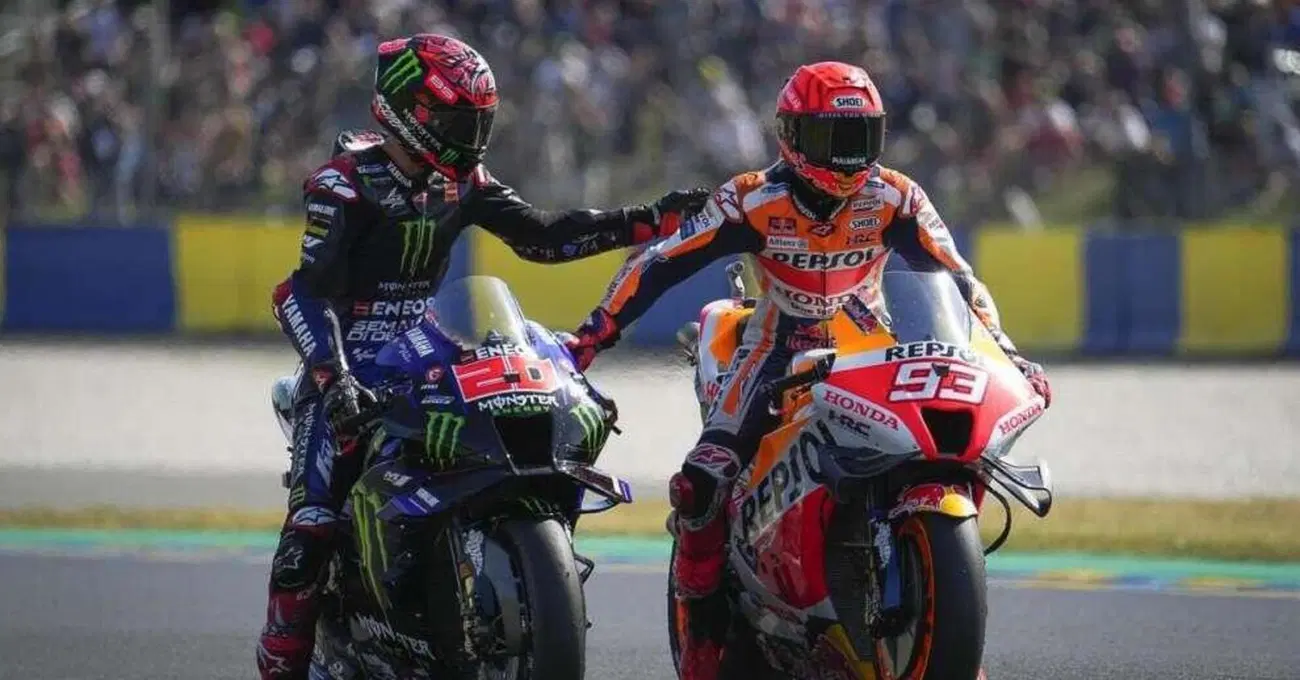 Ridere delle umane sorti, per provare a alleggerire una situazione che sta diventando insostenibile. E’ la soluzione a cui sono ricorsi Marc Marquez e Fabio Quartararo. Uno si ritrova con una Honda che non rende minimamente onore ai sacrifici che il pilota ha fatto per rimettersi in forma dopo tre anni di vero e proprio calvario. L’altro, Fabio Quartararo, ha firmato un contratto sulla base di promesse che non sono state mantenute neanche in minima percentuale. Entrambi non vincono più. Entrambi si ritrovano, ormai ogni maledetta domenica, a combattere per fare “esimo”. E questo quando va bene, perché quasi sempre, soprattutto per Marc Marquez, l’epilogo dei gran premi fin qui disputati ha avutolo stesso colore, lo stesso odore e la stessa consistenza della ghiaia. Roba che un qualunque sportivo consapevole del suo talento finirebbe per impazzire.