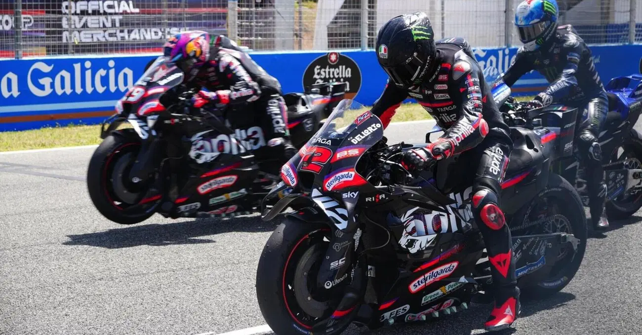 Test al limite del soporifero, non soltanto per chi ha festeggiato la sera prima: i team hanno messo in pista poche novità sostanziali, principalmente per via dei test coi prototipi 850 previsti per mercoledì e giovedì, preferendo invece lavorare su messa a punto e strategie dell’elettronica. Yamaha ha portato un nuovo telaio e una versione aggiornata del cupolino, ma a lavorare di più sull’aerodinamica sono state KTM (nuova carena), Ducati, che prova diverse soluzioni anche dallo scorso anno, con la vera novità rappresentata da una vistosa cover del forcellone, e Aprilia, vera dominatrice della giornata. E non solo per via dei tre piloti piazzati nelle prime tre posizioni nella combinata dei tempi di fine giornata, anzi: a fare la differenza oggi è l’approccio allo sviluppo, che nel caso del marchio veneto è pesantemente ispirato alla Formula 1. Un po’ come vorrebbe fare l’organizzatore, con la differenza che in Aprilia ci riescono anche bene.