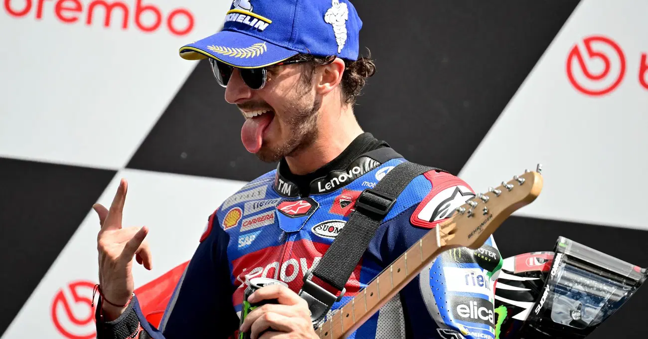 Pecco Bagnaia ci ha messo due curve a liquidare la pratica. Giusto il tempo di trovare il corridoio giusto prima della prima e, poi, piazzare la manaìovra perfetta nel bel mezzo della seconda. Solo fino a lì la rockstar Pecco Bagnaia da Chivasso ha suonato insieme agli altri. Poi, dalla curva 3 è stato un assolo. Di muscoli, di precisione, di ritmo perfetto, con tempi da qualifica e una vera chitarra elettrica a attenderlo sotto la bandiera a scacchi. Classica scenetta confezionata insieme ai ragazzi del suo fanclub, per rendere ancora più indimenticabile questo GP d'Italia 2024. Un GP che Ducati ha voluto celebrare tingendo d'azzurro le sue due moto ufficiale. Azzurro nazionale. Ma anche azzurro che ha riportato il sereno dpo giorni in cui s'è parlato troppo di mercato, di trattative, rifiuti, mosse e questioni che in realtà dovrebbero essere solo di contorno.