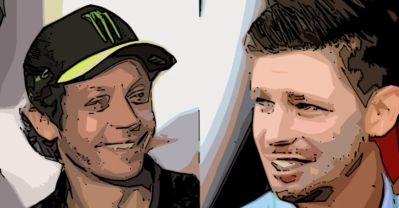 Eccola quindi, la classica foto da paddock con i due abbracciati di fronte al fotografo. Solo che, per una volta, non è chiaro chi abbia chiesto di farla. Quello che è chiaro è che queste sono le corse: a volte vinci, altre perdi, ma se hai fatto la storia è anche perché c’era un altro che voleva farla al posto tuo. Rendersi conto di averla fatta insieme è roba da ex piloti, ed è bellissimo che succeda ancora. Come Lucchinelli e Uncini, come lo stesso Rossi con Biaggi. Sono fuoriclasse, non bisogna scegliere. L’unico rammarico è che una sfida come questa non la vedremo più: il primo titolo della Ducati, il primo di Valentino contro i pronostici. Serve altro?