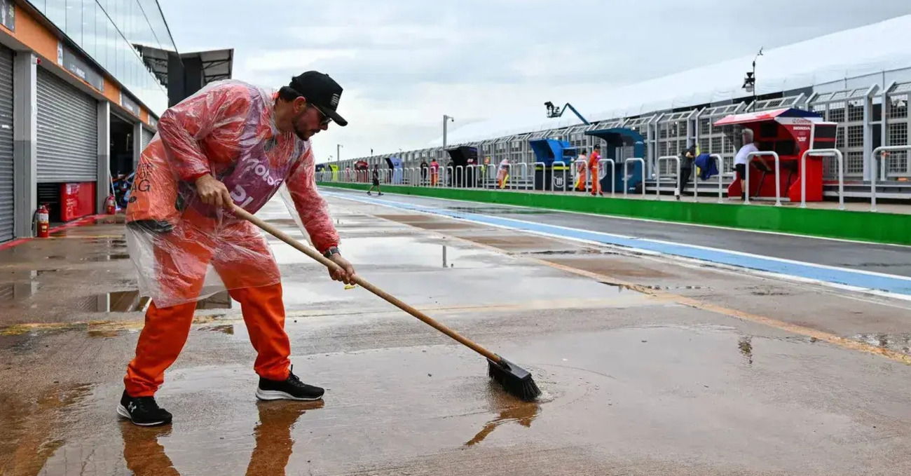 Purtroppo le immagini non solo erano vere, erano anche il preludio di un problema più grande. Che non ha nulla a che vedere col fatto di correre durante la stagione delle piogge, perché se avesse piovuto di nuovo sabato o domenica probabilmente a questo punto le gare non le avremmo viste per niente. Succede così che venerdì piove e i piloti buttano via metà delle prequalifiche, mentre sabato cede una tubatura per il drenaggio dell’acqua sul rettilineo, aprendo una buca. È roba senza precedenti, eppure lo è anche la reazione dei brasiliani: cemento a presa rapida al posto di un vero asfalto al grido di ‘non è in traiettoria’, Moto3 posticipata di qualche ora e Moto2 di un giorno, con la Sprint della MotoGP corsa un’ora e mezza più tardi.