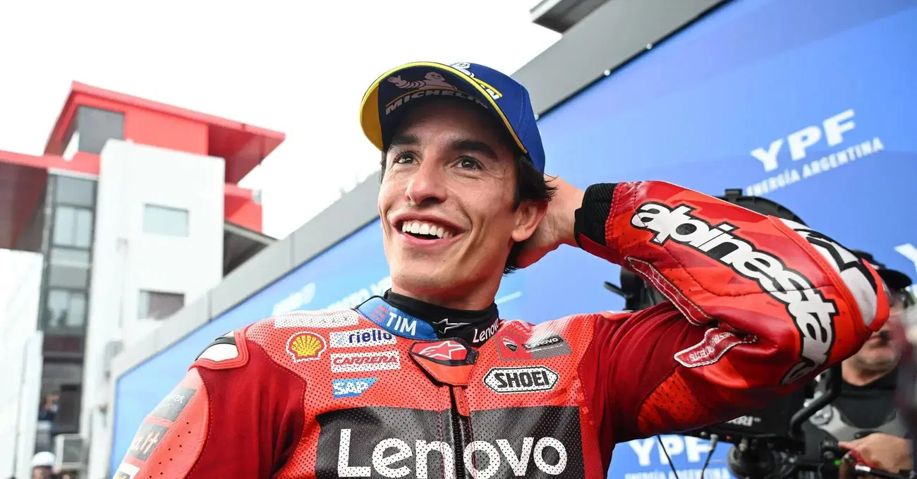 Dall'inizio della MotoGP 2025 nessuno è riuscito a mettere le ruote davanti a Marc Marquez, nemmeno per mezza curva. Due Sprint Race, una gara lunga, cinquantun giri complessivi con piste (Buriram e Termas de Rio Hondo) sempre libere davanti a sé, dopo essere partito dalla pole. Oggi in Argentina si è addirittura schierato sulla casella di partenza numero uno con la ruota anteriore della Ducati puntata verso l'interno di curva uno: l'ha fatto per mettersi sin da subito sulla traiettoria pulita, per proteggere l'interno della prima destra, per inviare a tutti una dichiarazione d'intenti. "Io sono primo e primo voglio restare per sempre", sembrava voler comunicare la Desmosedici 93 con quella posa lì, che Marc ha trasformato in azione progressiva non appena i semafori si sono spenti. Come era accaduto in Thailandia, l'unico in grado di mettergli un po' di pepe sulla coda è stato il fratello Alex, capace di mantenere un impressionante ritmo sul piede dell'1'37"alto nei primi sette passaggi, ritmo sporcato da un 38"basso all'ottavo, di cui Marc si è prontamente servito per portare il suo vantaggio a sette decimi e chiudere la Sprint sudamericana con un secondo tondo di margine.