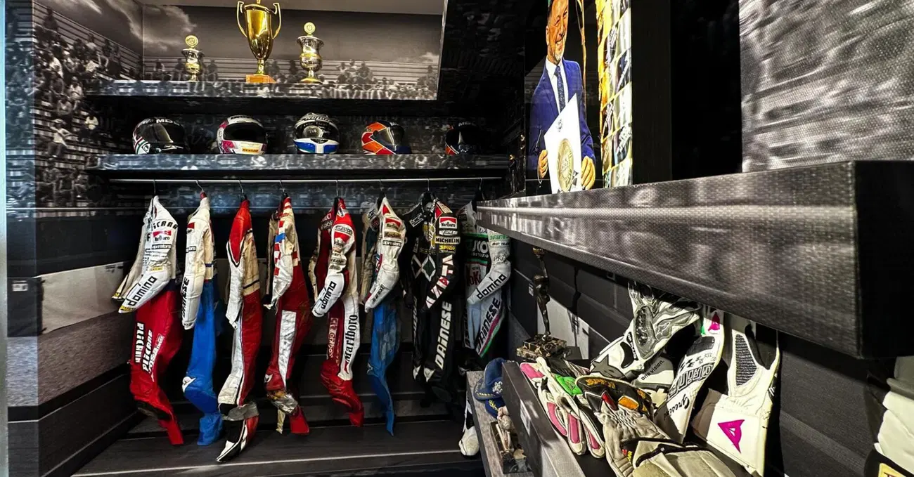 All’evento organizzato durante il mercoledì di Misano per raccontare il museo sono presenti un gran numero di ospiti, a partire dai sei piloti Gresini Racing che il GP di casa lo festeggiano con tute e livree speciali ispirate al Garelli del Team Italia con cui Fausto, ventenne, vinse due titoli mondiali in 125 negli anni Ottanta. Sul palco si parla della sua storia, viene mandato un video, la sala è piena e le sedie non bastano. In prima fila c’è la famiglia guidata assieme al team da Nadia Padovani, a ricordarci che questa è l’unica squadra in MotoGP a gestione famigliare: una follia bella e faticosa. A fianco Carlo Merlini, che formalmente ricopre il ruolo di direttore marketing ma di fatto ha un ruolo ancora più centrale. Sempre davanti a tutti ma dall’altro lato della sala ci sono i grandi rappresentanti di questo sport, da Carmelo Ezpeleta (CEO di Dorna) a Giovanni Copioli (Presidente FMI e Vice Presidente FIM), oltre a Paolo Ciabatti e Davide Tardozzi (Ducati Corse) che invece stanno un po’ più indietro mescolati assieme al pubblico.