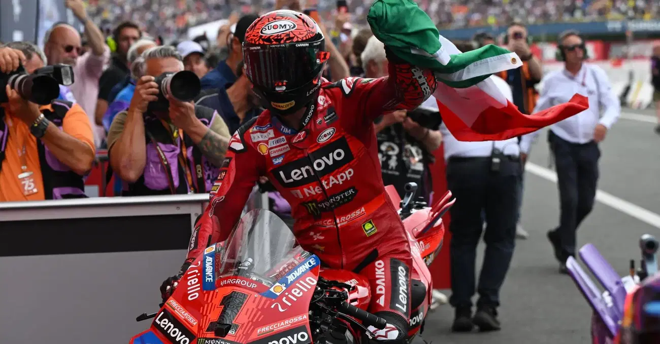 È fin troppo facile sparare a zero su una Nazionale umiliata in campo, dalla stampa, dalle televisioni, per poi paragonarla impietosamente all’Italia delle moto. Perché? Perché il distacco è talmente abissale da sembrare incolmabile. Non si parla di risultato, parametro comunque imprescindibile che vede Bagnaia nell'Olimpo degli dei dopo questo weekend: primo tempo in entrambe le sessioni del venerdì, pole in qualifica col record della pista, sempre in testa nella Sprint Race dalla prima all’ultima curva, dominio replicato pari pari nella gara lunga della domenica, in cui ha ovviamente siglato anche il giro veloce. Pecco in carriera non è mai stato così perfetto, ma “perfetto” è un aggettivo già esageratamente inflazionato sul suo conto. Allora ci vorrebbe un termine nuovo, uno di quelli che va di moda. Aura? Aura. Sì, Pecco Bagnaia è terribilmente attraente. Per quella sua pulizia classica e anche un po’ regale che esprime nella guida, nei gesti, nelle parole: “Se ho ancora dei limiti da limare? Mi conoscete bene, quindi sapete perfettamente che sono molto critico con me stesso. Onestamente c’è moltissimo lavoro da fare, errori fatti recentemente erano evitabili. Questo weekend ho cercato di fare il massimo, come sempre”.