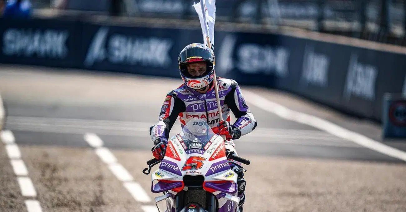 I francesi, che lo adorano, gli hanno dedicato un film, mentre gli italiani per lui hanno eccezionalmente messo da parte una naturale antipatia sportiva per i suoi connazionali in favore di un affetto sincero. Johann Zarco fa questo effetto perché di piloti come lui non ce ne sono, non in MotoGP almeno: trentatré anni il prossimo 16 luglio, due titoli mondiali consecutivi nella classe di mezzo accompagnati da un gran numero di capriole all’indietro, un buon repertorio tra chitarra e pianoforte oltre, inutile a dirsi, uno stile di guida diverso rispetto a tutti gli altri. Quando parli con lui sai che non ti dirà bugie, piuttosto starà zitto o si rifiuterà di parlare. E sai anche che se non è d’accordo con te non lo scoprirai da altri perché lui non avrà fatto nulla per nasconderlo. Lo incontriamo nell’hospitality del team Prima Pramac, sono le 15:00, per la MotoGP è il giovedì del Gran Premio d’Olanda ad Assen. Johann sta bevendo succo di pesca, chiede se ne vogliamo un po’ e quando diciamo di sì travasa un po’ del suo in un bicchiere vuoto. Non è male, questo succo.