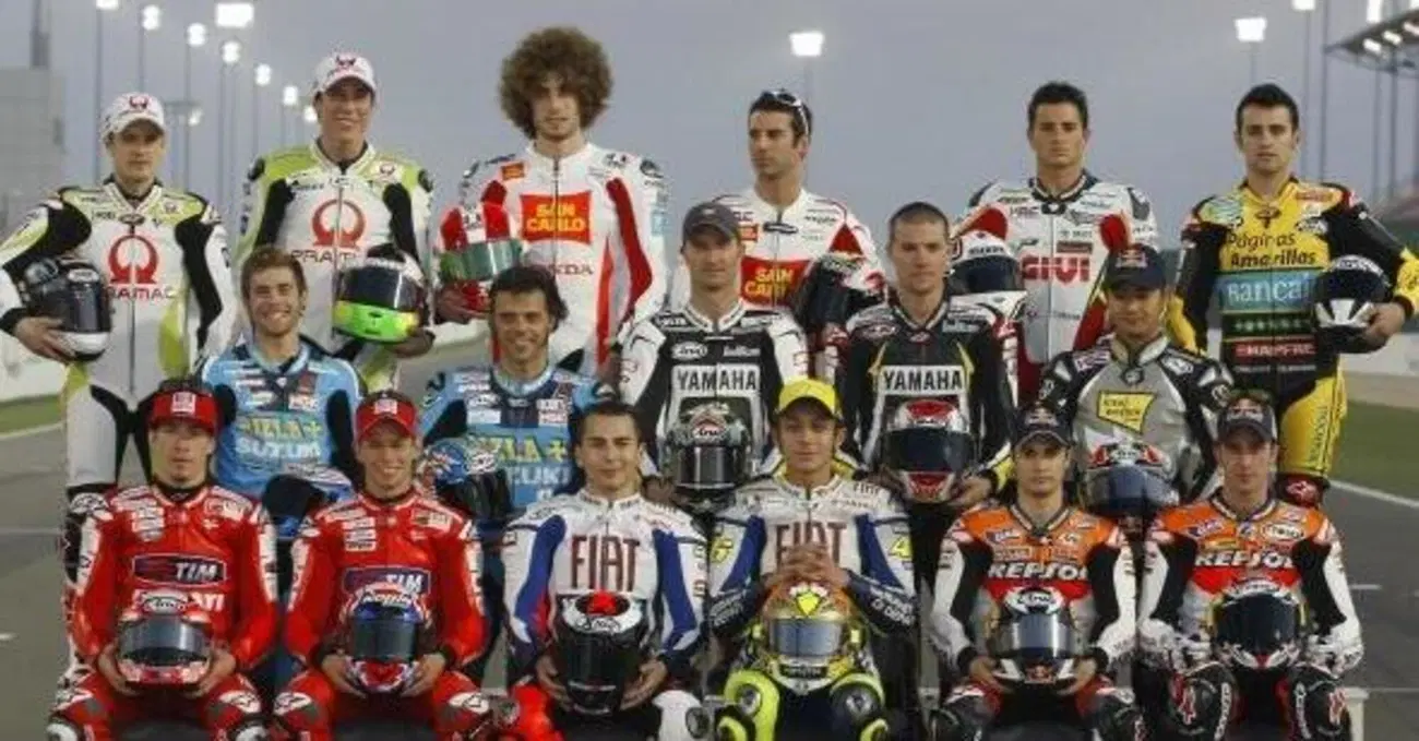 Ma di pensionati d’elite ce ne sono diversi nella foto, a cominciare da Jorge Lorenzo che nel 2010 vincerà il suo primo titolo in MotoGP. E poi Casey Stoner, ad un passo dal divorzio con una Ducati che proprio non si riesce a guidare e i problemi fisici che si faranno pressanti. Corre con Nicky Hayden, il Kentucky Kid, un altro che ci ha lasciati troppo presto per uno scherzo balordo del destino. Sopra di loro Alvaro Bautista e Loris Capirossi con la Suzuki: difficile immaginare che sarebbero arrivati al titolo mondiale dieci anni dopo, con un 4 cilindri in linea (e non più un V4 come all'epoca) di gran lunga più efficace di quello sviluppato da Yamaha.
