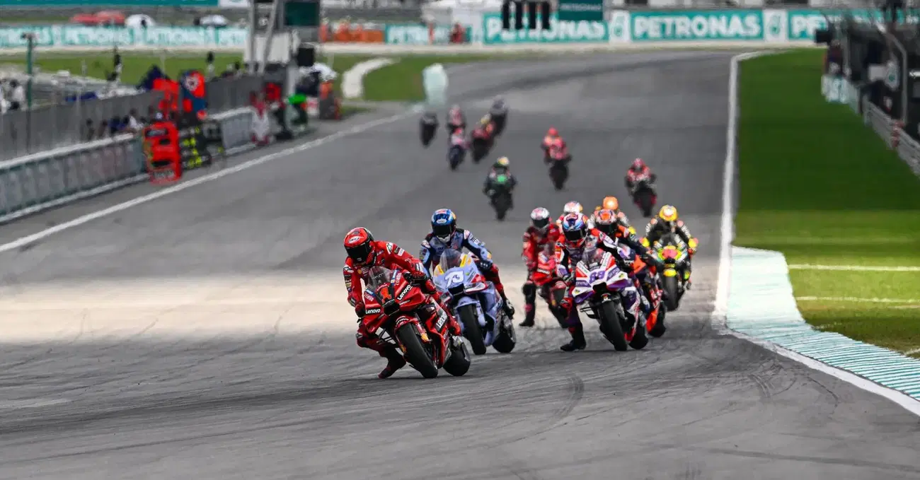 Il sabato malese della MotoGP aveva preso la piega di Pecco Bagnaia che - dopo un venerdì in sordina - ancora una volta stava costruendo tutto bene per far girare il weekend dalla propria parte: pole position strappata a Jorge Martín (scivolato nel tentativo finale) agli sgoccioli del Q2, con record della pista annesso. Poi, alle 8 italiane, la Sprint Race scatta puntuale come Bagnaia, che mantiene la leadership e - cosa ancor più importante - mette Alex Marquez ed Enea Bastianini tra sé e il rivale di Madrid. "È il weekend di Pecco " - hanno pensato un pò tutti subito dopo la partenza della gara breve. Troppo presto. Perché Bagnaia, nonostante una prima determinata resistenza, al giro 5 si vede costretto a cedere il passo ad un Alex Marquez arrembante, uscito vittorioso da una breve bagarre con Jorge Martín, nel frattempo liberatosi di Enea Bastianini. Jorge approfitta senza esitazione del momento di debolezza di Pecco, impiegando mezzo giro per francobollarsi agli scarichi della Desmosedici rossa e organizzare un attacco, tracciando una traiettoria più stretta in ingresso di curva 14, la "destra" secca che immette nei due rettilinei consecutivi di Sepang.