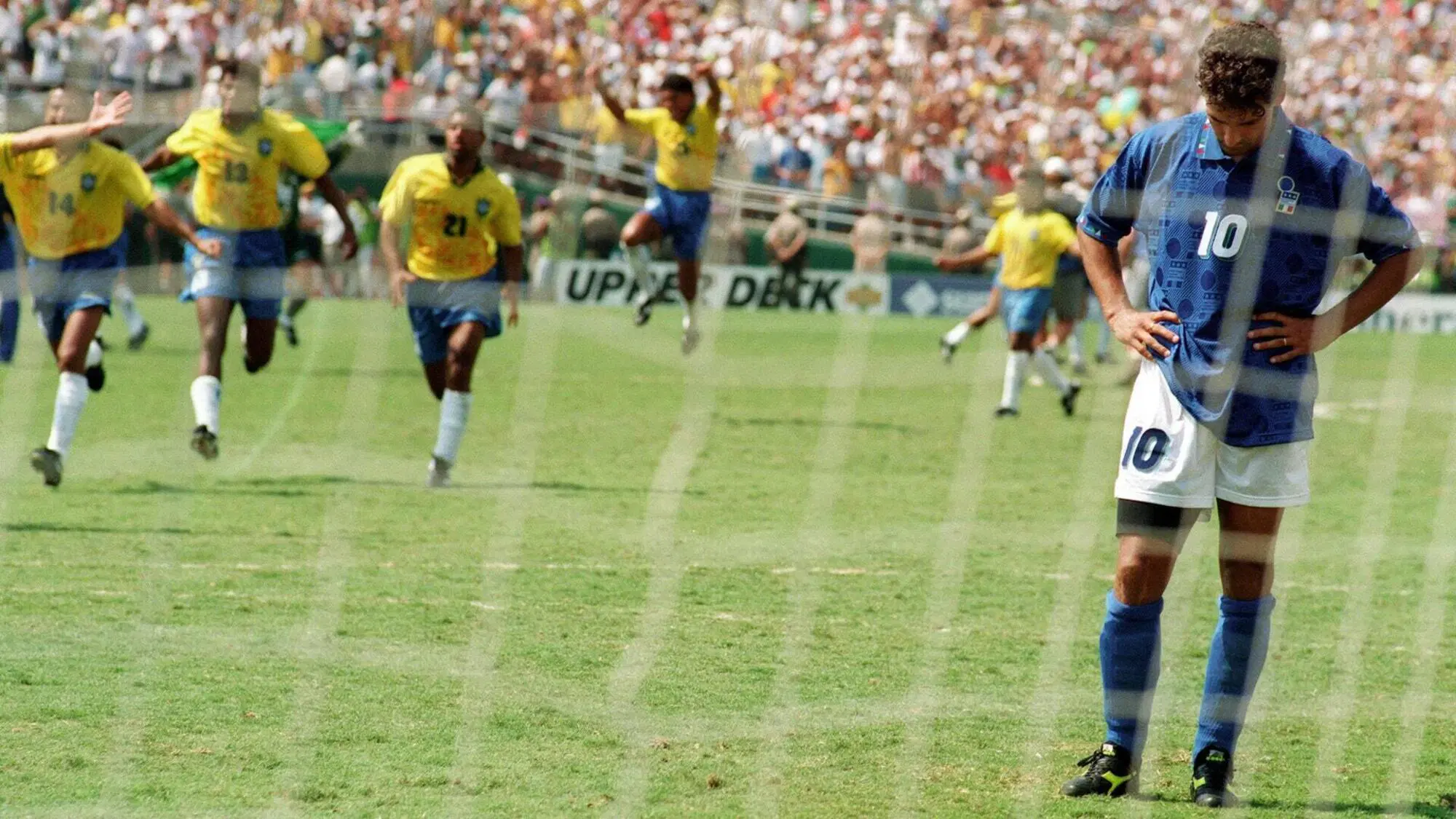 Pasadena, caldo clamoroso, stadio ancor più infuocato, media di tutto il mondo pronti a scrivere il risultato finale tra Italia e Brasile, due squadre meravigliose. L’Italia, però, a quella finale ci arriva zoppa. Nella fase a gironi, Franco Baresi si rompe il menisco. Ansia costante, ma niente paura: 25 giorni dopo, proprio per la finale, è in campo contro uno degli attacchi più forti del mondo. A preoccupare davvero è l’uomo del destino, il Divin Codino, che ha portato l’Italia fino a quella partita, a suon di gol e grandi giocate. In semifinale realizza una doppietta alla Bulgaria di Stoickov, ma a fine match qualcosa non va: problemi muscolari. I dubbi su una possibile assenza di Baggio scuotono il Paese, ma, ehi, è la finale di Coppa del Mondo, e Baggio, semplicemente, ci deve essere. Dopo 120 minuti di totale anonimato, per l’eroe azzurro arrivano i calci di rigore. Com’è finita lo sappiamo tutti. Un errore che, secondo alcuni, non avrebbe mai commesso se fosse stato in salute come nelle partite precedenti. Un rientro in campo anticipato che ha portato a una bruciante sconfitta per l’Italia, mentre il Brasile dedicava il Mondiale ad Ayrton Senna.