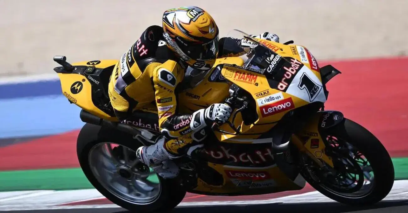 A Misano il sole del primo weekend di giugno picchia forte, scaldando aria (27 gradi), asfalto (oltre 40 gradi) e spiriti. La SBK si prepara ad accendere il quinto round della stagione 2023; i maxischermi del circuito romagnolo inquadrano Pecco Bagnaia e Domizia Castagnini che addentano un sandwich, prima di soffermarsi su un Andrea Iannone in moto perpetuo lungo la griglia di partenza: The Maniac va a stringere la mano a Danilo Petrucci e, successivamente, ribadisce al microfono Sky di Sandro Donato Grosso di essere al lavoro per progettare un ritorno alle competizioni non appena avrà terminato di scontare la squalifica (dicembre 2023). La sorpresa, però, è soltanto una. Si tratta delle Panigale V4 R Aruba, ufficiali, di Alvaro Bautista e Michael Riben Rinaldi. Sono gialle. Totalmente gialle. Come la Ducati 748 con cui Paolo Casoli - detto "Gasolio" tra le vie del paddock - vinse il Mondiale Supersport nel 1997. È una livrea celebrativa della storia del marchio di Borgo Panigale, una colorazione che - con tutta probabilità - vedremo rivestire anche le Desmosedici di Bagnaia e Bastianini tra una settimana, al Mugello.