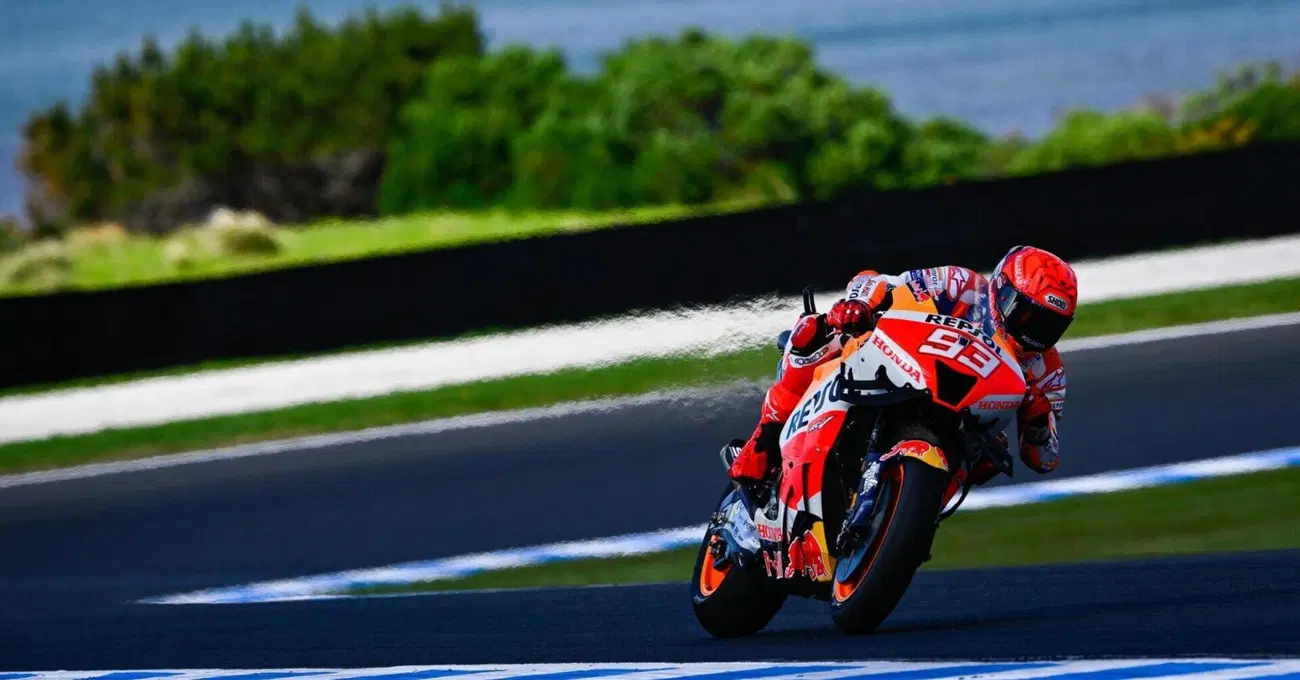 “Questa è una moto strana, servono soluzioni non ordinarie” – La frase di Marc Marquez per giustificare la scelta della gomma morbida per il GP d’Australia non è un elogio alla stravaganza. Ma è la consapevolezza, ci si perdoni il paragone con il calcio, che a volte l’unica soluzione per andare in goal è tentare una rovesciata, un colpo d tacco. Che poi sono quei gesti che distinguono i campioni. Marc Marquez non è ordinario, la sua moto non è ordinaria (anzi è proprio problematica) e oggi in Australia serviva, appunto, il colpo di tacco. E lui, l’otto volte campione del mondo, non ha dimostrato di essere tornato perché è salito sul podio. Ha dimostrato di essere tornato perché, appunto, ha avuto il coraggio di un colpo di tacco. Sì, ha fatto anche goal agguantando il secondo posto, ma è quasi qualcosa che vale di meno.