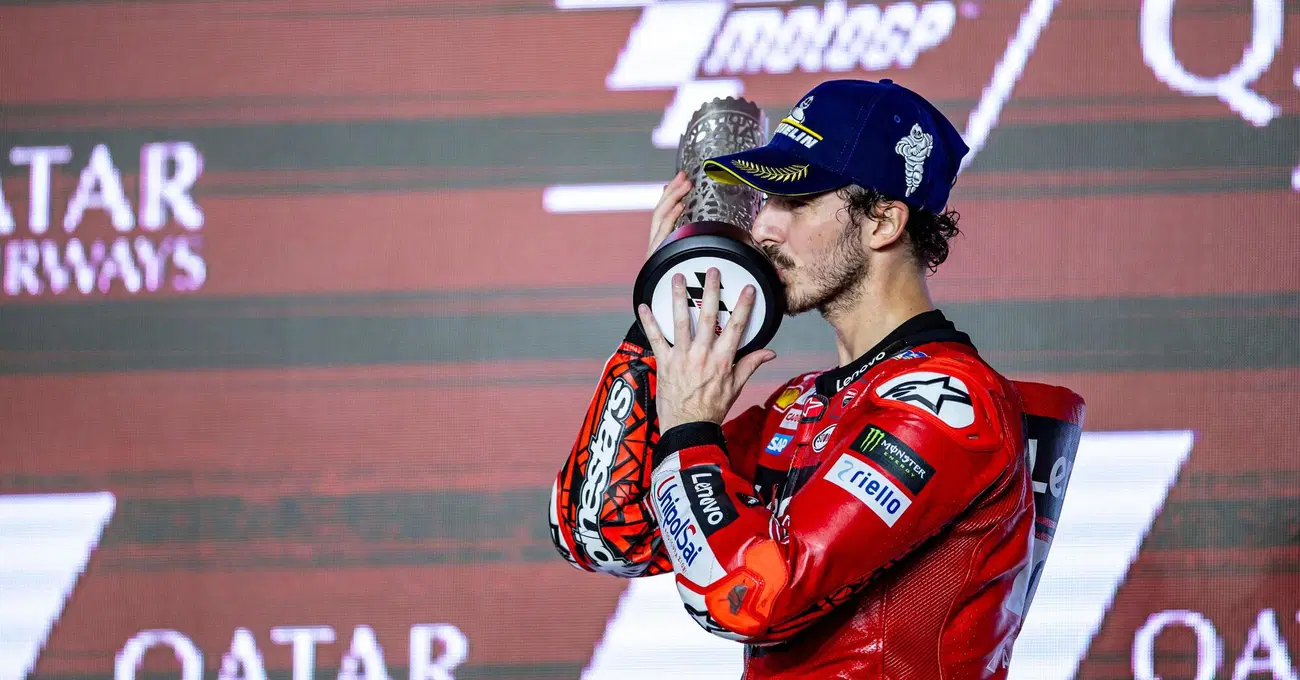 “21 punti non sono tanti, ma siamo assolutamente in vantaggio. Jorge deve rischiare veramente tanto a Valencia. È una pista che gli piace, ma io lì nel 2021 ho vinto e vado forte. Sarà fondamentale la sprint race”. Parla così Pecco Bagnaia, al microfono di Sky, dopo il GP del Qatar, che gli ha visto incrementare di altri sette punti (partiva con un vantaggio di 14, che dopo il sabato si era ridotto a 7) il divario tra lui e Jorge Martín. Per lo spagnolo è stata una domenica nera, probabilmente anche per lo sport del motore: vedere un campionato ucciso così, da una gomma fallata, fa male anche a chi tifa Bagnaia, niente di meno. Non che lui lo veda come un problema: “È molto difficile tirare conclusioni”, ha raccontato. “Qua avevamo una gomma abbastanza particolare, non la usiamo spesso ma ha funzionato veramente bene… nella sprint purtroppo no, mentre oggi in gara ho fatto quello che mai sarei aspettato di fare. Potevamo farci influenzare dalla situazione, cercare qualche modifica nel warm up e farci fregare, ma siamo stati bravi a non cambiare nulla perché sapevamo che la moto era a posto. La cosa fondamentale è stata partire veramente forte e sfruttare la partenza per restare davanti”.