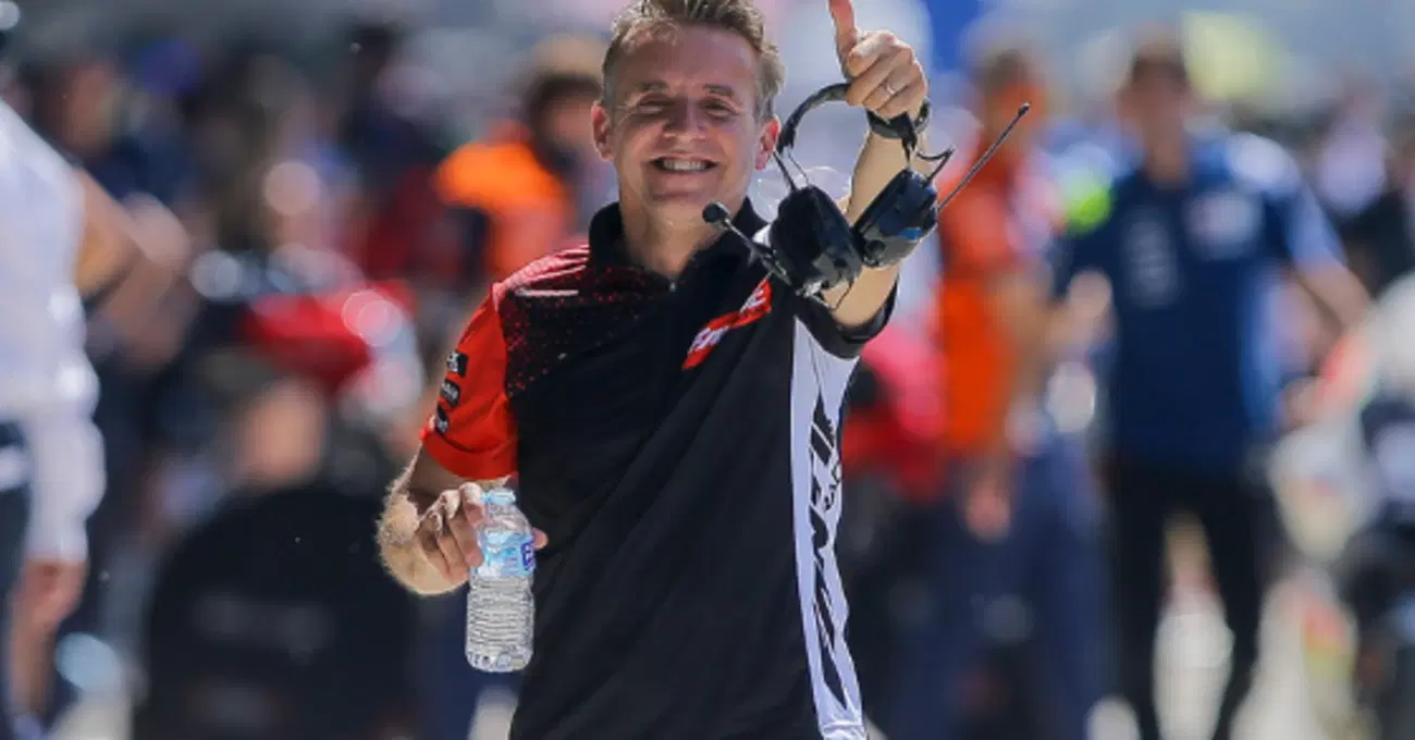 Mancano un paio d’ore al via della gara di Moto2 e nel camion tecnico di Fantic sembra che sia solo giovedì e che non stia per arrivare quella quarantina di minuti in cui ci si gioca tutto. Invece è domenica, ma è tutto in ordine, ognuno fa il suo con evidente concentrazione, ma anche con assoluta serenità e Aron Canet (che da lì a poco sarebbe passato secondo sotto la bandiera a scacchi, dietro al leader della classifica mondiale, Ai Ogura, e davanti a Tony Arbolino, ndr) fa su e giù tra i camion stesso e il box con un piatto di riso in mano e gli occhi di chi è consapevole che da lì a poco potrà togliersi un’altra bella soddisfazione su un circuito che gli piace e in una gara che rischia d’essere bagnata, visto che il cielo promette nulla di buono. Ecco, la calma apparente è la prima cosa che colpisce anche quando si apre la porta del piccolo ufficio di Roberto Locatelli. E’ stato campione del mondo con la 125 nel 2000 con il mitico team di Vasco Rossi, poi ha lavorato per Valentino Rossi e l’Academy e, adesso, è team manager proprio di Fantic, in Moto2. A ricordarlo quando faceva il pilota e a vederlo oggi da fuori sembra uno di quei piccoletti sempre a gas aperto. Invece poi, faccia a faccia, capisci che tutta quella calma apparente la trasmette lui. Perché è vero che è un ex pilota tutto istinto e velocità, ma ha un inaspettato lato da filosofo. Uno che va a fondo, insomma, e che ha capito – grazie all’esperienza e a una vita intera passata nel mondiale – che la velocità non è mai figlia della frenesia e meno che mai del metodo improvvisato.