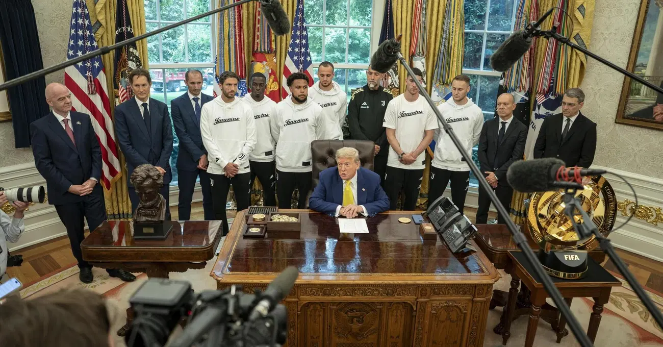 Li ha svenduti al “Compro Oro” dello Studio Ovale, John Elkann, i famosi “gioielli di famiglia”? La Juventus, squadra più titolata d’Italia e brand globale, che insieme a Ferrari fu uno dei preziosi più brillanti custoditi in quello scrigno tirato su a miliardi e appartenenza (seppur, esclusiva, elitaria, aristocratica) dall’Avvocato Gianni Agnelli, è finita a fare da comparsa muta sul palcoscenico di Donald Trump. Tudor, Vlahovic, ma anche gli statunitensi Weah e McKennie, disposti in fila tra quel ciuffo sprofondato in poltrona e le sfarzose tende da satrapo con le quali Trump ha sobriamente arredato il luogo più solenne della democrazia statunitense. Lo spettacolo agghiacciante, troppo anche per un siparietto elettorale anni Novanta su Telemarket, non resterà certo negli annali del calcio, ma in quelli della pubblicità gratuita a Stellantis e agli affari a stelle e strisce di Elkann, quello sì. E lo si capisce anche da come, insieme al presidente della Fifa Gianni Infantino, posa giulivo brandendo la casacca bianconera dedicata a The Donald, presidente numero 47. Quel sorriso, quel maledetto sorriso.