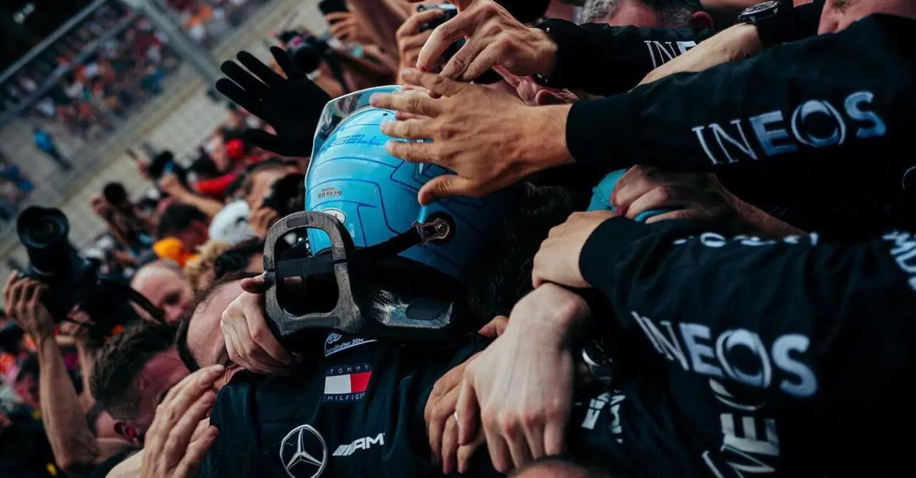 Sono mani che parlano una lingua universale quelle che battono forte sul casco e sulla schiena di George Russell dopo la vittoria, inattesa e inaspettata, al Red Bull Ring. Sono le mani dei suoi uomini, dei ragazzi di una squadra che negli ultimi anni è passata da tutto a niente, dovendo accettare la conclusione di un ciclo dominante come quello terminato nel 2020, l'agonia di un anno disperato come il 2021 e la caduta libera delle ultime tre stagioni, tra risultati che non arrivano, domande senza risposte, macchine che non rispondono come dovrebbero e addii difficili da accettare come quello di Lewis Hamilton, in partenza per il sogno Ferrari alla fine di questo 2024. Sono le mani di uomini che hanno imparato ad aspettarsi di tutto da questo sport fatto di pochissime certezze, di tempi lunghi come secoli e attimi che cambiano tutto.