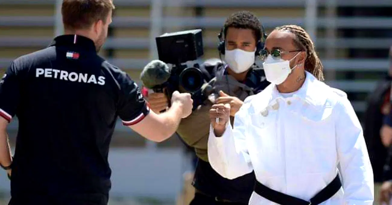 Il sette volte campione del mondo ha difatti spiazzato di nuovo tutti, ancor prima di iniziare a guidare, con un inedito look che ha catalizzato l'attenzione di fotografi e appassionati. Il pilota della Mercedes si è infatti presentato sulla pista di Sakhir, in Bahrain, con treccine e un completo bianco, particolarmente appariscente, composto da pantaloni e stivali dello stesso colore, più una cintura nera alla vita. Insomma un singolare stile alla Karate Kid, firmato da Alexander McQueen (stilista britannico che si è tolto la vita nel 2010), da imitare per essere chic, ma tutt'altro che economico.