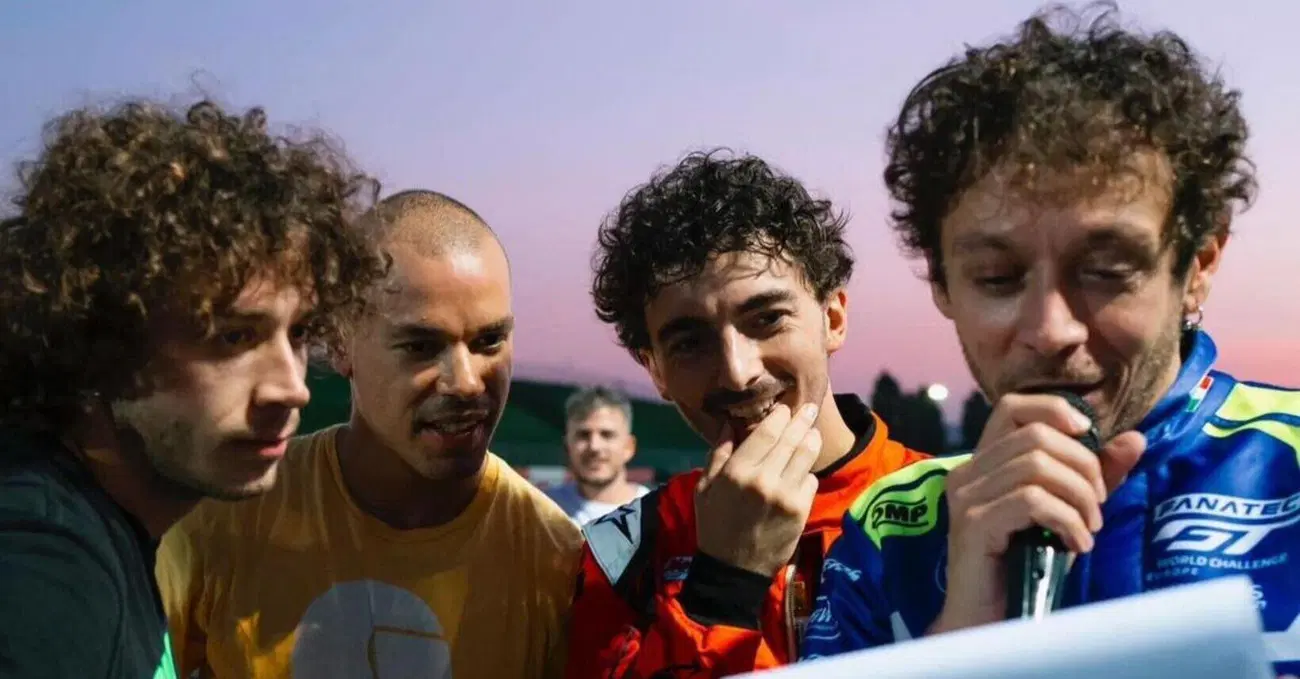 Del risultato sportivo, e di Pecco Bagnaia che si è imposto sulle quattro ruote, vi avevamo già raccontato qui. Quello che invece avevamo solo potuto immaginare l’hanno raccontato, adesso, proprio Vale e gli altri suonati della VR46, in un video che, di fatto, dimostra ancora una volta il clima speciale che c’è tra i ragazzi di Tavullia. Un gruppo che non è stato fatto solo da quei pochi ragazzi che fanno i piloti di professione, ma che comprende tutti davvero. Tanto che nella giornata del Trofeo Walter Distillati, sono scesi in pista tutti quanti, donne comprese (con vittoria di Camilla Fratesi), suddivisi in quattro categorie. E c’è stato pure il bis, con una quinta gara buttata su all’ultimo minuto scimmiottando l’endurance, a coppie, e con tanto di partenza a piedi, correndo verso i mezzi.
