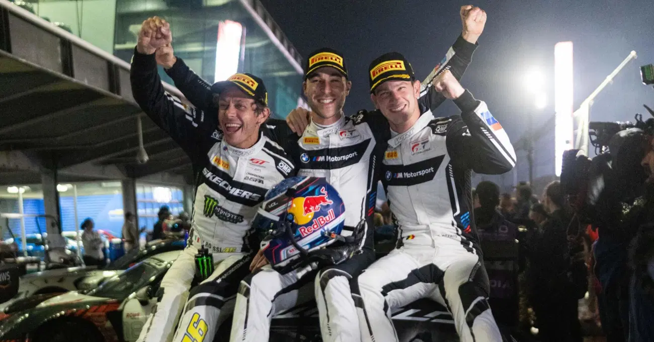 “Sono molto molto contento, è stata una bella gara”, ha commentato sorridente Valentino prima di salire sul podio. “Alla fine siamo stati molto fortunati ma queste sono le gare, per me vincere qui è speciale perché ci ho vinto con la MotoGP nel 2008. È qualcosa di fantastico e sono anche molto contento di aver aiutato Kelvin a vincere il titolo. Con il team abbiamo fatto un lavoro fantastico”. La BMW #46, infatti, ha tagliato il traguardo per prima dopo aver superato la gemella #777 con Raffaele Marciello alla guida, riuscendoci grazie a una strategia che ha previsto l’azzeramento del limite massimo di stint di 65 minuti, con un giro di anticipo rispetto alla concorrenza.